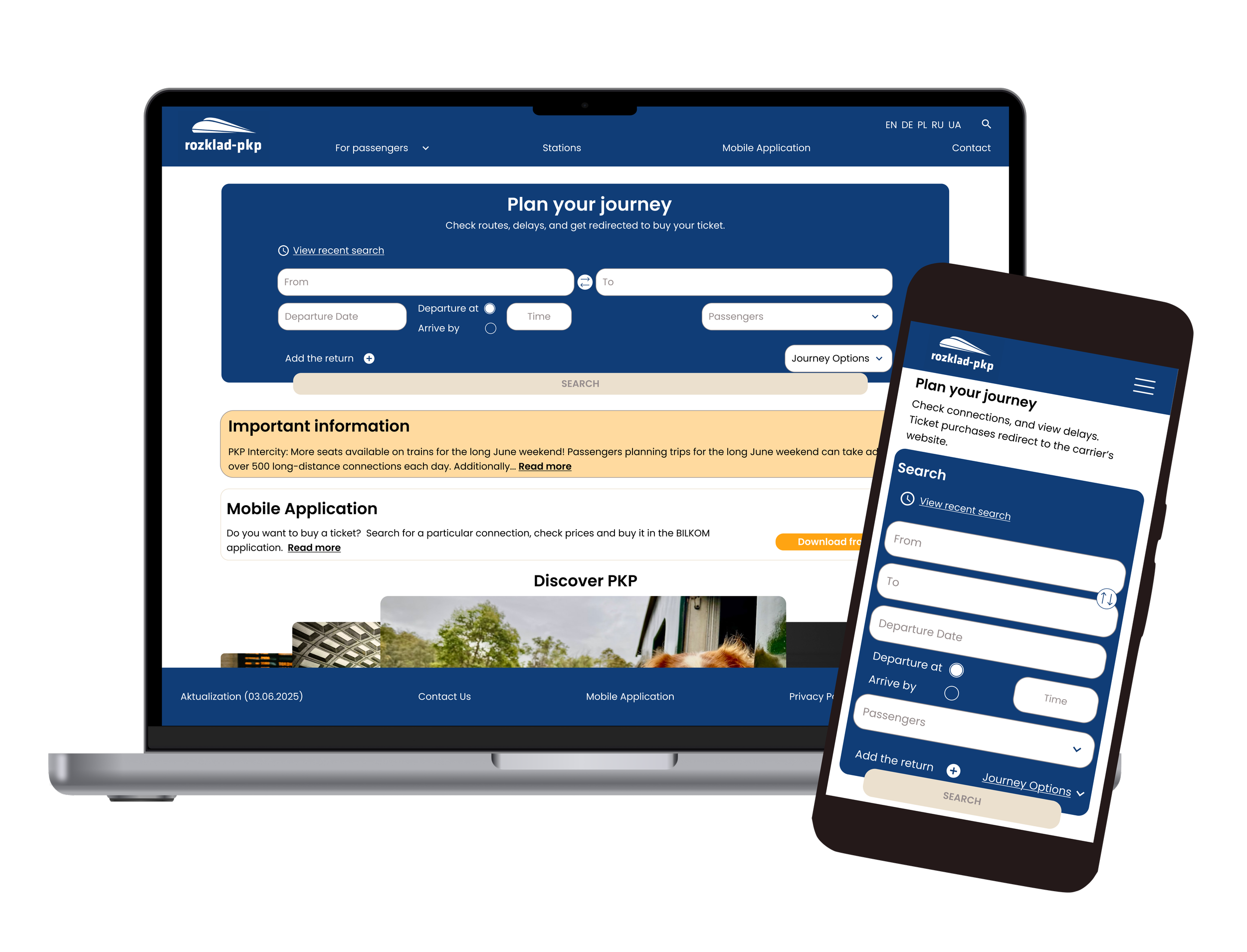 Redesign of the official PKP website, aimed at facilitating connection searches and other important travel information.