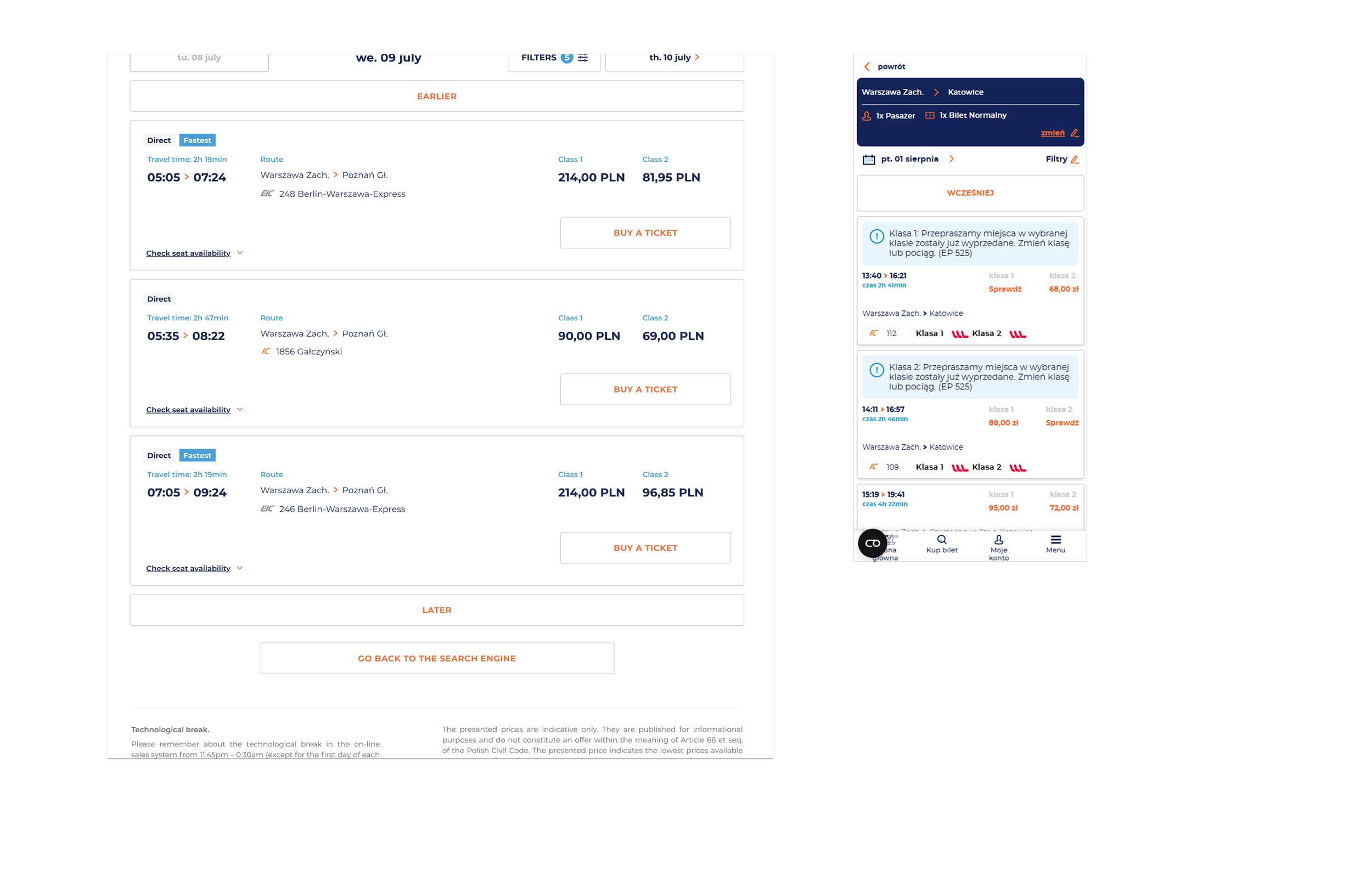 The selection of features was limited by the capabilities of the system in which PKP operates; that is, the inability to purchase tickets directly on the PKP main website, which redirects users to the carriers’ sites to complete the purchase.